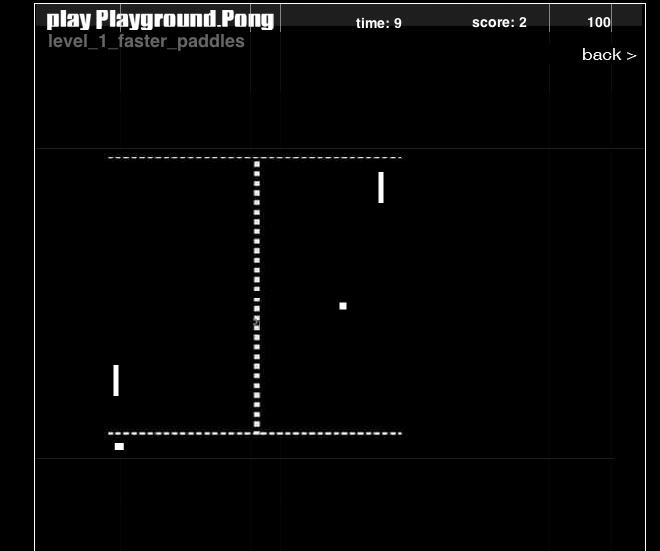 PlaygroundPong is a proof of concept for inverting Avatar & Playground. The player cannot move the paddles at all like in a regular Pong game. The ball seems to move from side to side but clearly it does not! The player cannot identify with the avatar (playing object), he or she has to get to terms with moving the background (from left to right, right to left, top to bottom and bottom to top) in order to bring the paddles in a position where they manage to hit the ball back. The paddles themselves slightly move up and down according to what direction the player moves the playground to. An utterly unfamiliar set up for a player who expects to play and navigate an avatar. He or she now plays the playground and tries to keep avatars and object in position. The player needs to rewire his or her brain before succeeding with the inverted gameplay. Control the playground! Play as playground!