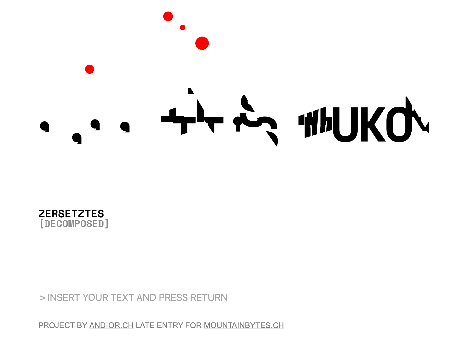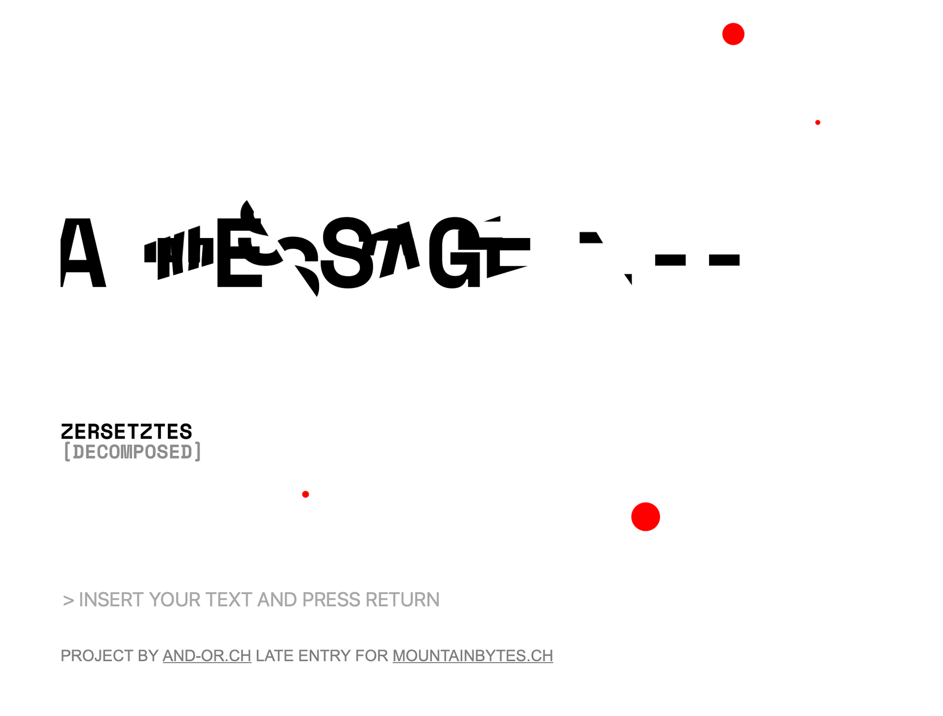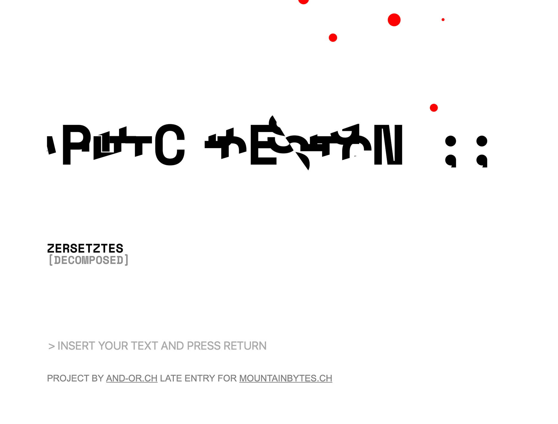 the demo "zersetztes_decomposed" consists entirely of text. this text is bombarded, and the individual letters are cut up and reassembled. the result is something both familiar and alien - at the same time.