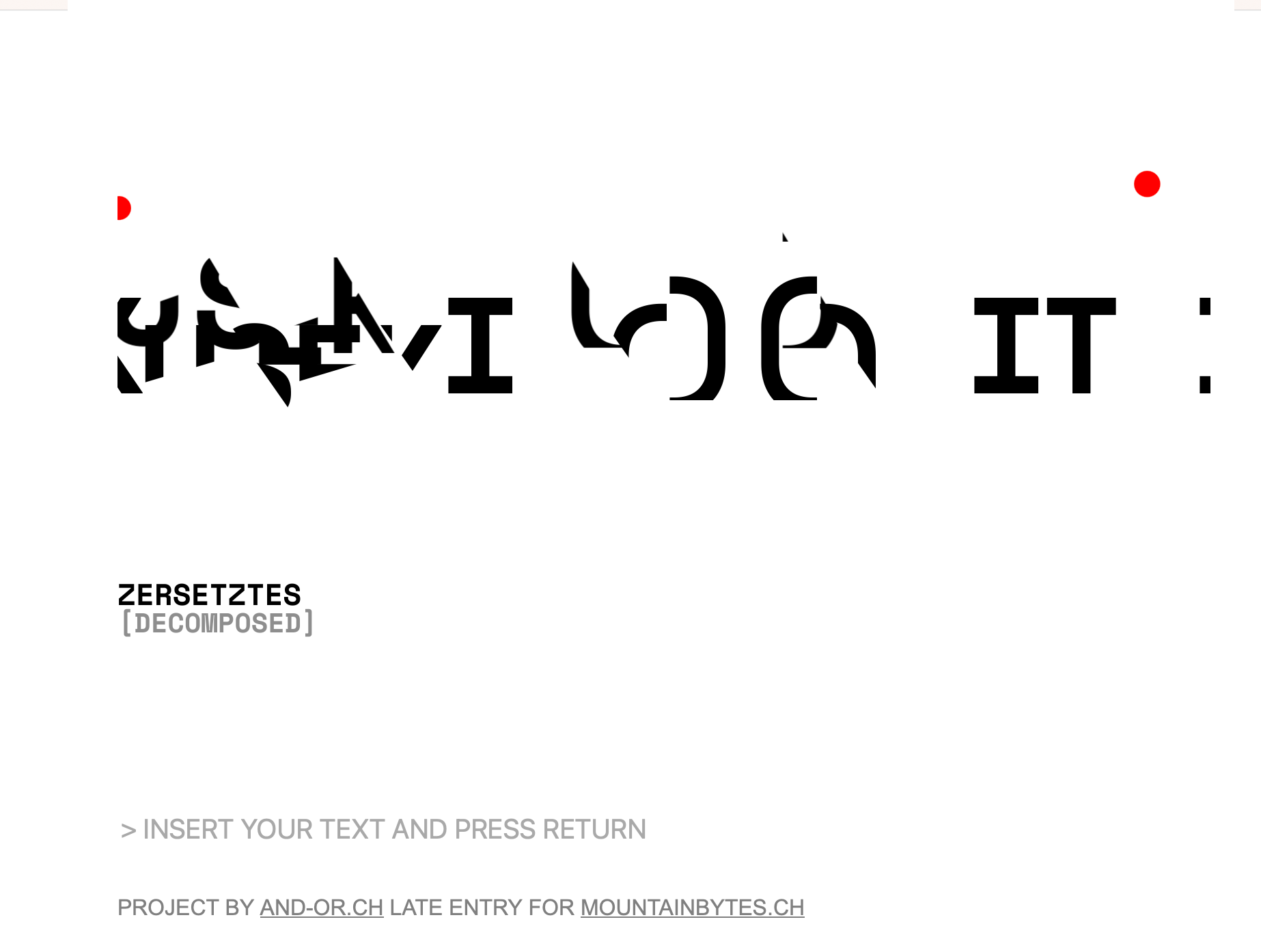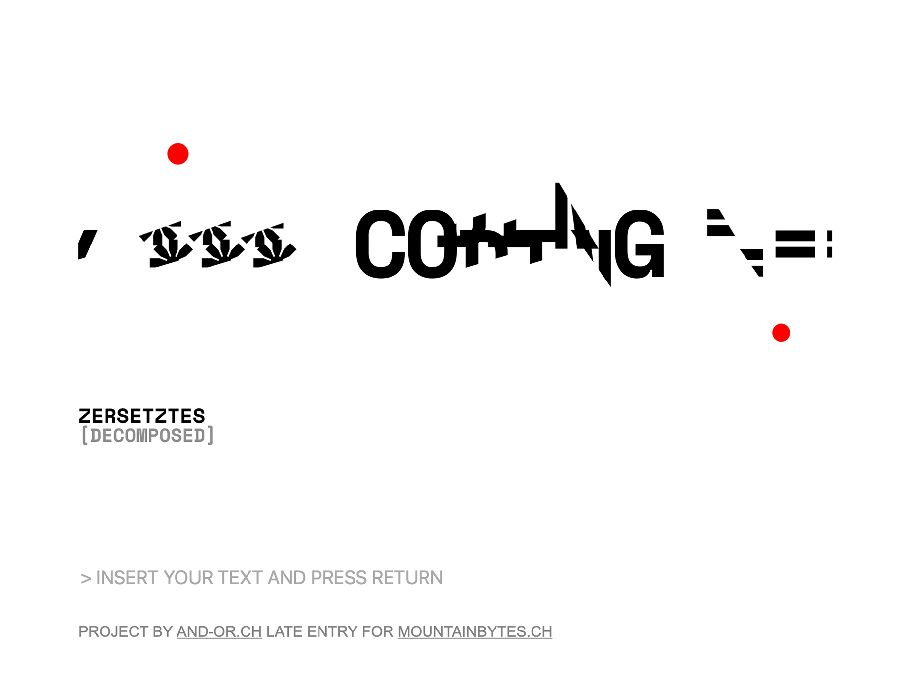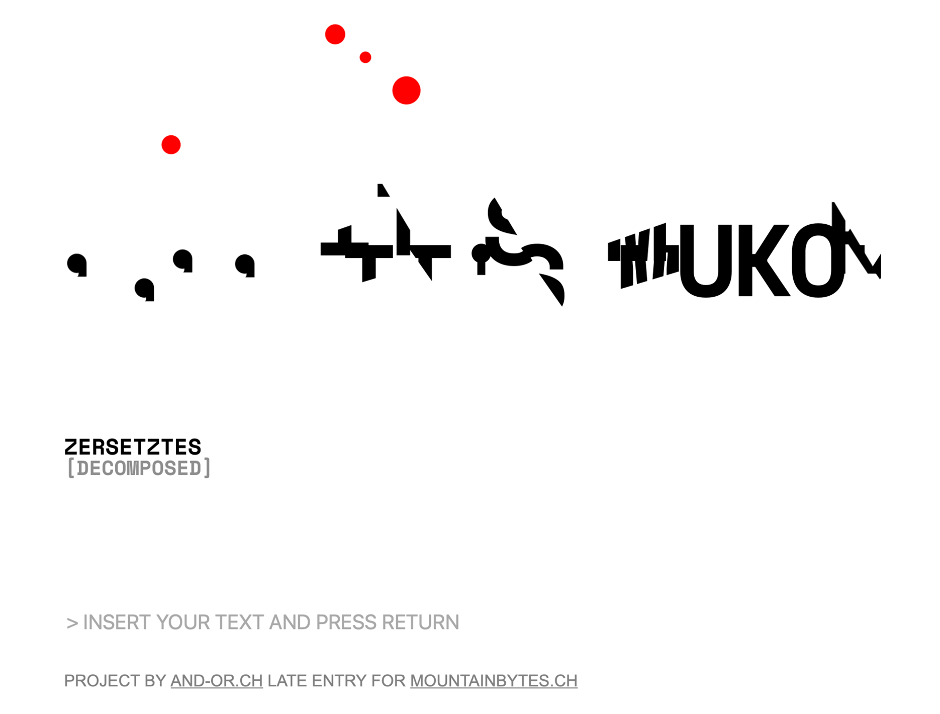 the demo "zersetztes_decomposed" consists entirely of text. this text is bombarded, and the individual letters are cut up and reassembled. the result is something both familiar and alien - at the same time.